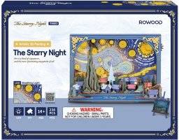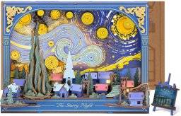 De Starry Night is een houten bouwpakket van een fraai diorama voor volwassen en iedereen vanaf ongeveer 8 jaar. Van Goghs Sterrennacht aan de muur? Dat kan iedereen met dit betoverende houten diorama van Rolife. Een idyllisch Frans dorpje met blauw-roze daken, een klein kerkje en sierlijke cipressen. Het komt 3D uit de rijk versierde lijst naar voren. Ingebouwde ledverlichting laat de sterren warm fonkelen. Met een tandwieltje kunnen de sterren draaien.