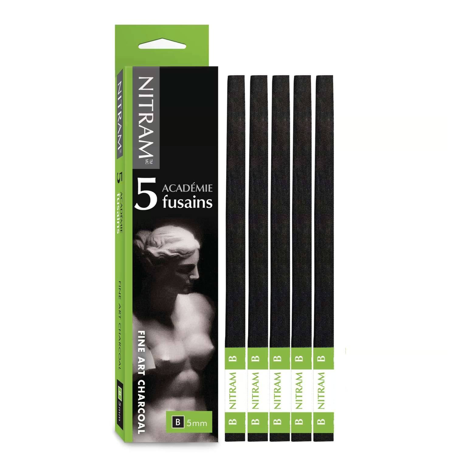set met 5 staafjes houtskool, maat 5mm. Hardheid B.