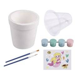 tip: Verf het mini potje en laat het een nacht drogen. Versier het met kleurrijke stickers, plaats het plastic binnenpotje erin, vul het met aarde en plant er een plantje in. Geschikt voor kinderen vanaf 6 jaar.