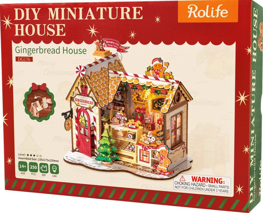 Gingerbread house van Robotime is een houten bouwpakket voor volwassenen om te maken en voor kinderen om bij weg te dromen. Het water loopt bijna in de mond bij deze gedetailleerde snoepwinkel waar de nostalgische, echte kerstsfeer vanaf spat. Details als rode bekers, kerstkoekjes met glazuur en een aarbeien cakerol, zijn fenomenaal en erg geliefd bij miniatuurhuisjes modelbouwers.