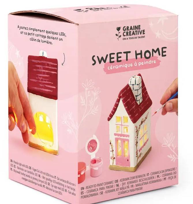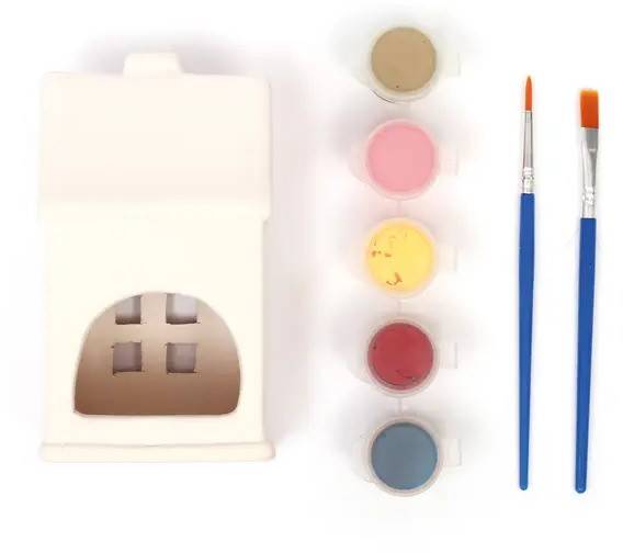Een compleet keramiek schilderpakket voor creatieve hobby’s en ontspanning. Dit pakket bevat een keramiekfiguur in de vorm van een huisje met verf en penselen, waarmee gebruikers eenvoudig een kleurrijk decoratief object kunnen schilderen. Geschikt voor kinderen en volwassenen.