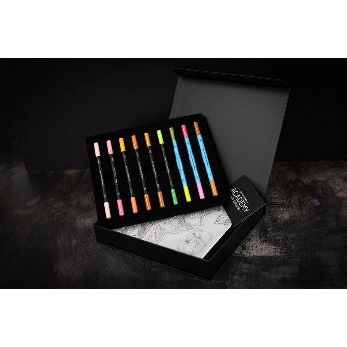Complete set met duocolor markers. Dit zijn markers met aan iedere kant een andere kleur. Inhoud: 6 markers (dus 12 kleuren) op alcohol basis en 3 markers op waterbasis. Inclusief stempelset en stempelkaarten.