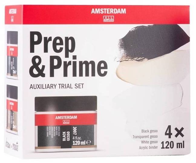 Met deze auxiliary proefset kun jij je canvas als een professional voorbereiden en primen. De set bevat vier mediums: zwarte gesso, transparante gesso, witte gesso en acrylbindmiddel. Elk medium is ontworpen om de perfecte basis voor je kunstwerken te creëren. Combineer met verf uit de Amsterdam Standard Series of Expert Series voor de beste resultaten. Deze set bevat: