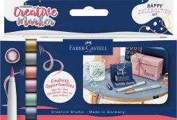 Goldfaber Creative Marker met een brushpunt B voor variabele lijnbreedtes is een echte allrounder voor uiteenlopende creatieve projecten, zoals handlettering, doe-het-zelfprojecten en upcycling. Deze marker is perfect geschikt voor gebruik op alle soorten papier, van licht tot gekleurd en zelfs donker papier. Daarnaast hecht het ook uitstekend op diverse andere oppervlakken, waaronder karton, glas, folie, keramiek, kunststof, terracotta, hout, metaal en steen. Dankzij de geurloze inkt op waterbasis is schudden of pompen niet nodig, en bovendien bloedt de inkt niet door het papier heen. De marker is veeg- en spatbestendig en wordt watervast na 30 minuten fixeren in de oven op 160°C. Houd er wel rekening mee dat de inkt niet vaatwasbestendig is. Set met 6 kleuren Happy Celebration (550, 551, 552, 590, 594, 553).