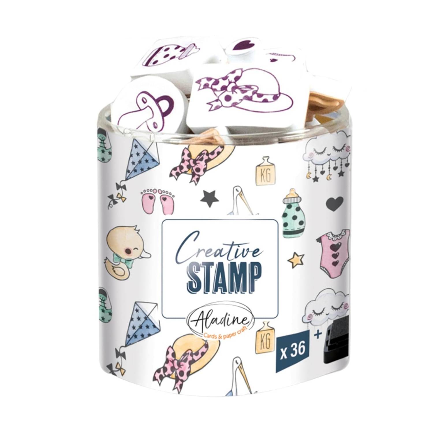 Deze vrolijke en veelzijdige set bevat 35 verschillende schuimstempels met allerlei schattige geboortemotieven, perfect voor het versieren van kaarten, uitnodigingen, scrapbooks, cadeauverpakkingen, labels of bullet journals.