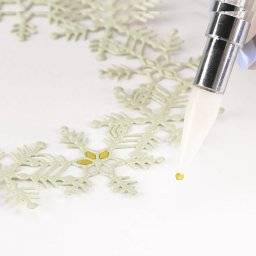 Aan de andere kant zit een plakpunt met een licht klevend oppervlak. Daarmee pak je moeiteloos kleine, delicate onderdelen zoals steentjes, pailletten of andere embellishments op en plaats je ze precies waar je wilt. De tool met een totale lengte van 18 cm is gemaakt van stevig metaal, heeft een sprankelende vulling van kleine edelsteentjes en ligt comfortabel in de hand. Dankzij de dubbelzijdige uitvoering heb je altijd het juiste hulpmiddel bij de hand: een onmisbare toevoeging aan jouw knutselgereedschap.
