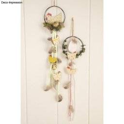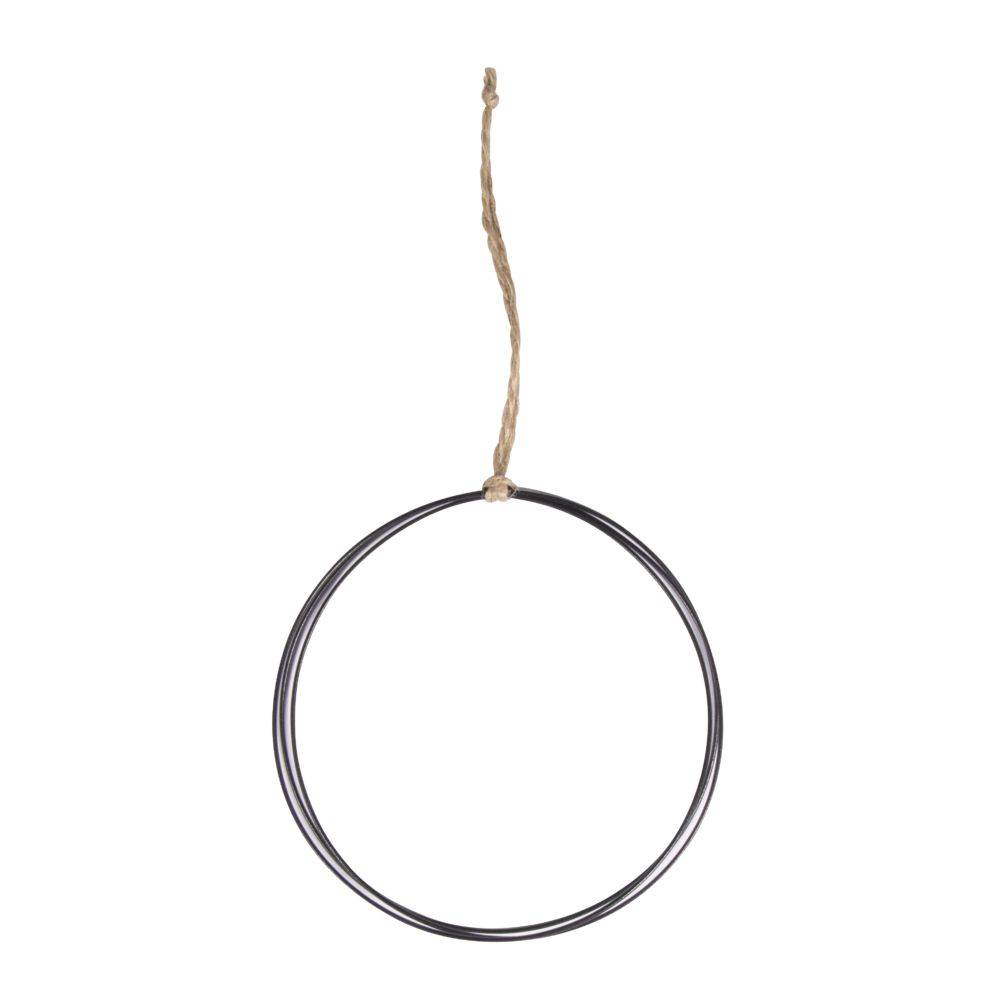 Deze stevige, zwarte draadring bestaat uit drie even grote ringen van elk 10 cm diameter, die aan de bovenkant aan elkaar zijn gelast. De ring kan snel en eenvoudig worden versierd met koorden, linten, bladslingers, houten confetti en nog veel meer. Geschikt voor elk seizoen.