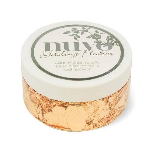 Met de Nuvo Gildeing Flakes van van Tonic Studio’s geef je kaarten, agenda’s, scrapbookpagina’s of cadeauverpakkingen letterlijk een gouden randje. Het is eenvoudig in gebruik en in tegenstelling tot gouden schrijfpennen, lijkt het echt of er een laagje bladgoud op de ondergrond is aangebracht.