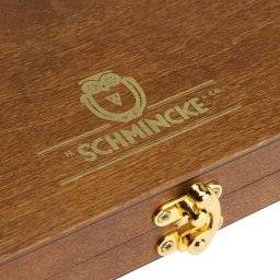 De luxe kist is afgewerkt met een retro gouden slot en gouden uilopdruk van Schmincke.