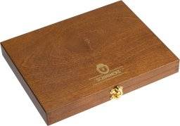 Speciale Retro set in luxe houten kist: doos met historische uilopdruk aan de buitenkant.