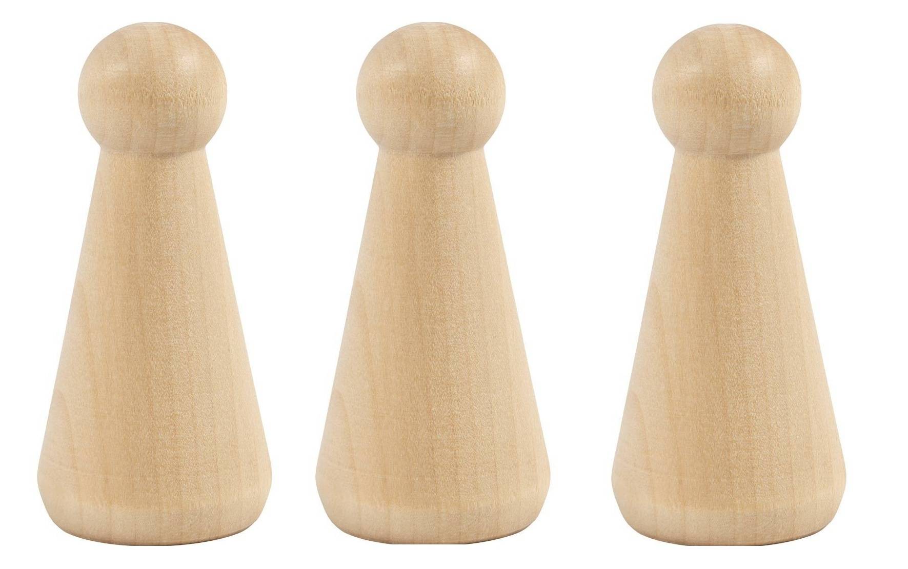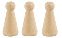 Deze houten figuren – kegelvormig zijn een set van drie onbewerkte houten figuren in kegelvorm. Met deze basisfiguren kun je zelf creatief aan de slag, bijvoorbeeld voor decoratieve objecten, kleine figuren, seizoensdecoraties of fantasie-wezens. Omdat het hout blanco is, kun je de kegels verven, beplakken of versieren met allerlei materialen naar eigen keuze.