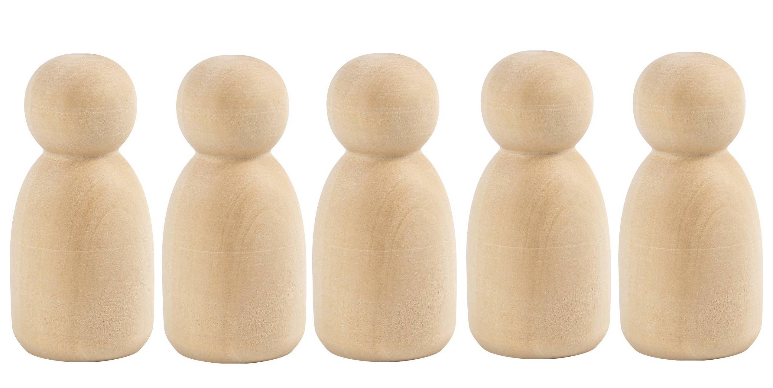 Houten figuren – ovaal. Ren set van vijf onbewerkte houten ovalen, met een hoogte van circa 5cm. De figuren zijn blanco, waardoor je ze zelf kunt beschilderen of decoreren — ideaal voor creatieve knutselprojecten of decoratief gebruik.