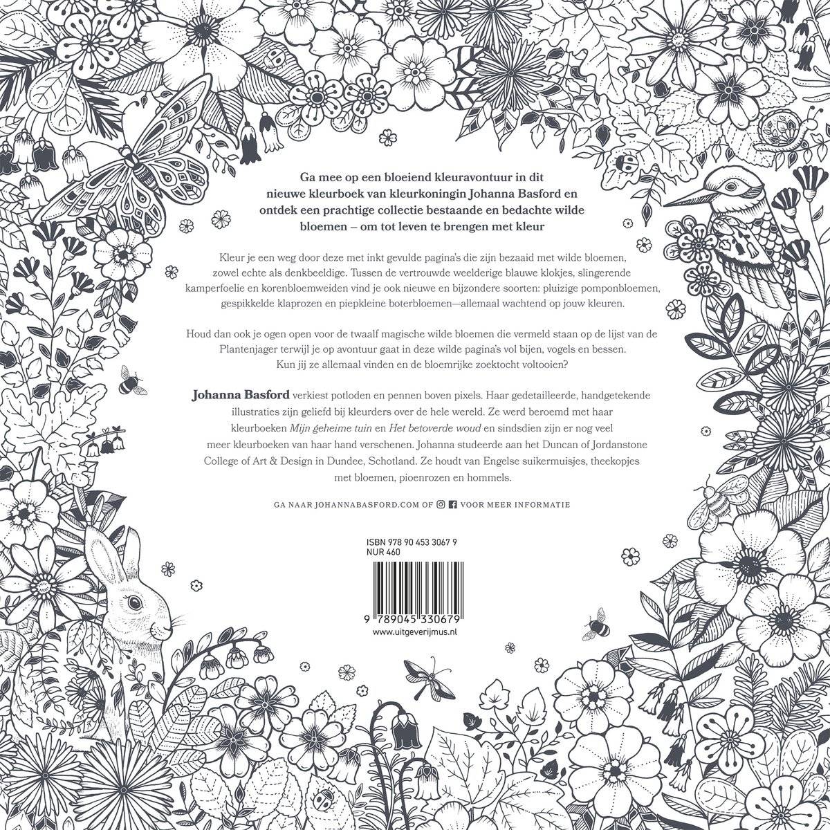 Ga mee op een bloeiend kleuravontuur in dit nieuwe kleurboek van kleurkoningin Johanna Basford en ontdek een prachtige collectie wonderlijke wilde bloemen. Kleur je een weg door deze met inkt gevulde pagina’s die zijn bezaaid met wilde bloemen. Tussen de vertrouwde weelderige blauwe klokjes, slingerende kamperfoelie en korenbloemweiden vind je ook fantasie soorten: pluizige pomponbloemen, gespikkelde klaprozen en piepkleine boterbloemen – die allemaal wachten tot jij ze tot leven brengt met jouw kleuren. Houd je ogen open voor de twaalf zeldzame wilde bloemen die achter in het boek staan afgebeeld. Kun jij ze allemaal vinden en deze bloemrijke veldtocht voltooien? Johanna Basford verkiest potloden en fineliners boven pixels. Haar gedetailleerde, handgetekende illustraties zijn over de hele wereld geliefd onder kleurders van alle leeftijden.