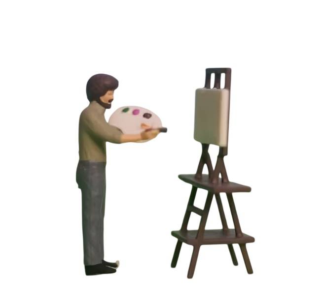 Schaal 1:64. Model schilder met palet, kwast en schildersezel.