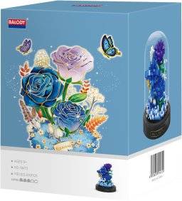 De Balody Blauwe Rozen 18472 bouwset, is een betoverende kunststof bouwset voor volwassenen en iedereen van 12 jaar, waarmee je een schitterend boeket blauwe rozen kunt creëren. De intense tinten blauw van de rozen vormen een prachtige blikvanger, terwijl de witte bloemetjes met groene blaadjes en het chique “glas” van de stolp het geheel afmaken. Deze set straalt luxe en elegantie uit.