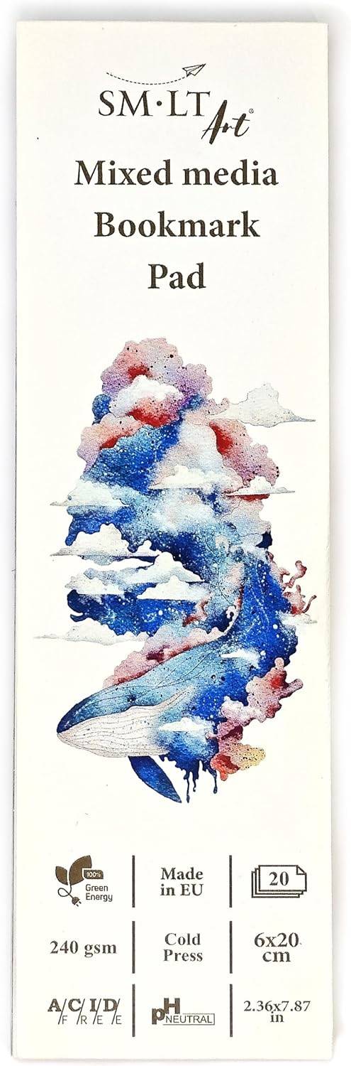 Het papier heeft een grovere structuur en is perfect voor aquarellen, plakkaatverf, acryl of fineliner. Het aan de bovenzijde gelijmde blok bevat 20 boekenleggers in het formaat6 x 20 cm en is zowel staand als liggend te gebruiken