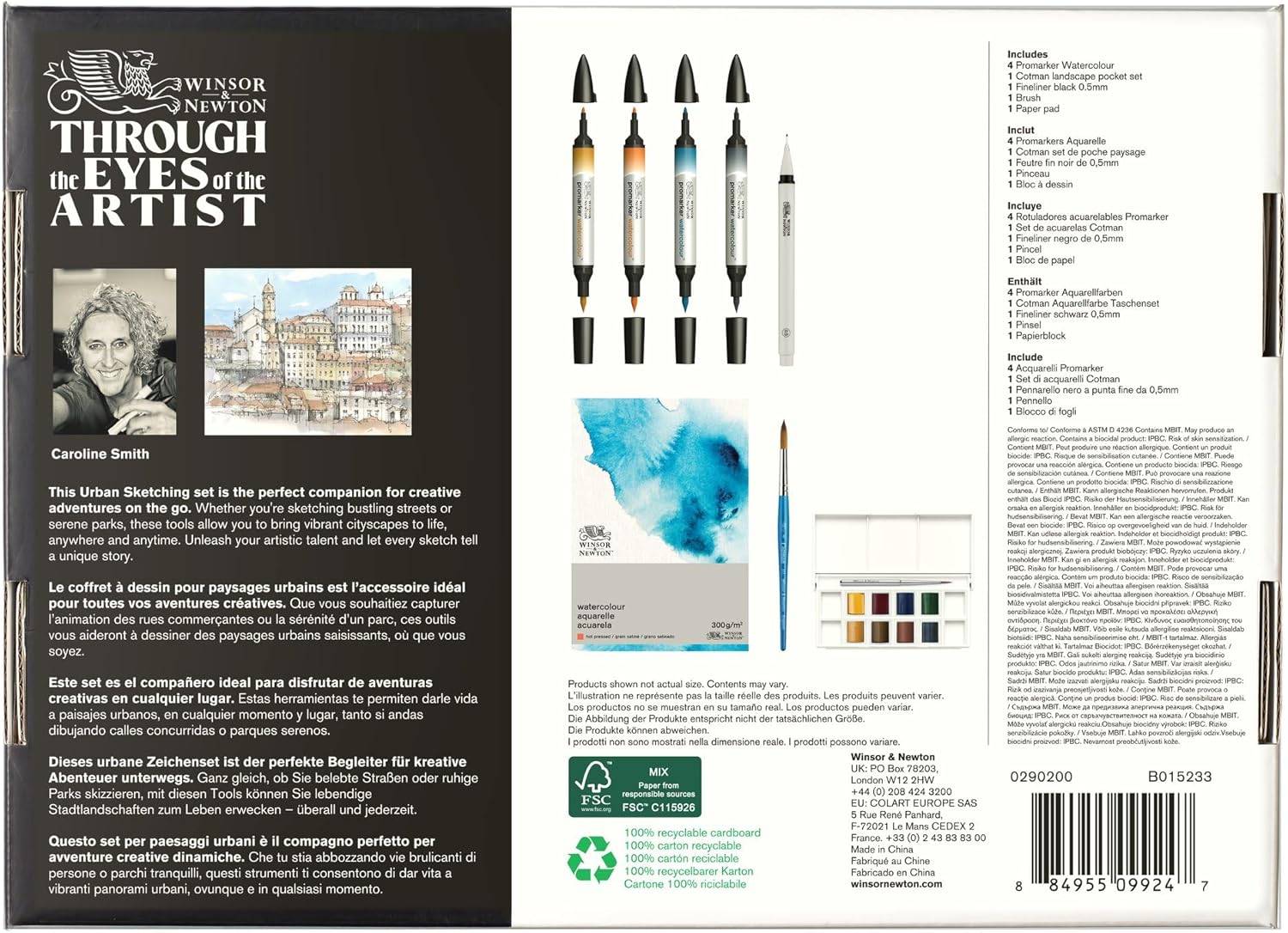 en complete teken- en aquarelset die ideaal is voor reizen, het vastleggen van stadsgezichten en het maken van kunst in de buitenlucht. Perfect voor het schetsen van architectuur, parken en levendige straatbeelden.
