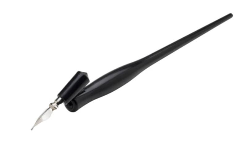 Kalligrafie pen met een 17,5cm lange zwarte kunststof houder met een schuine houder. De schrijf- en tekenpen is variabel insteek baar en daardoor zowel voor links- als rechtshandig te gebruiken.