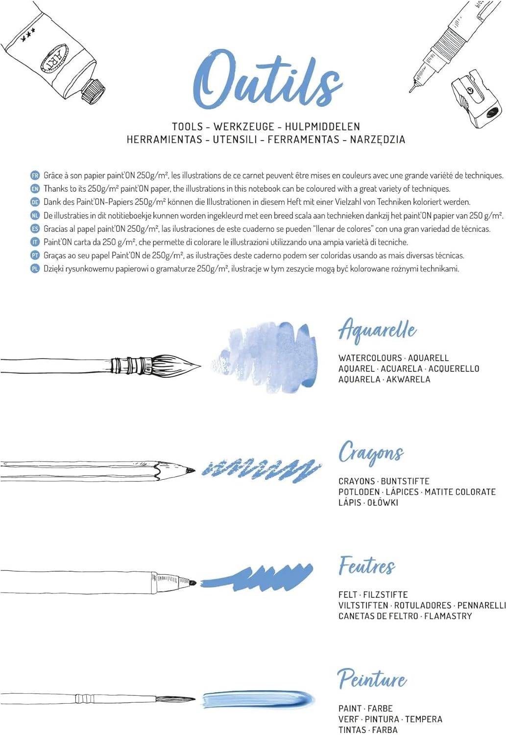 Door dit mooie stevige (250grams) papier is dit blok geschikt voor alle kleurmaterialen zoals potlood, stift, aquarel, verf etc.
