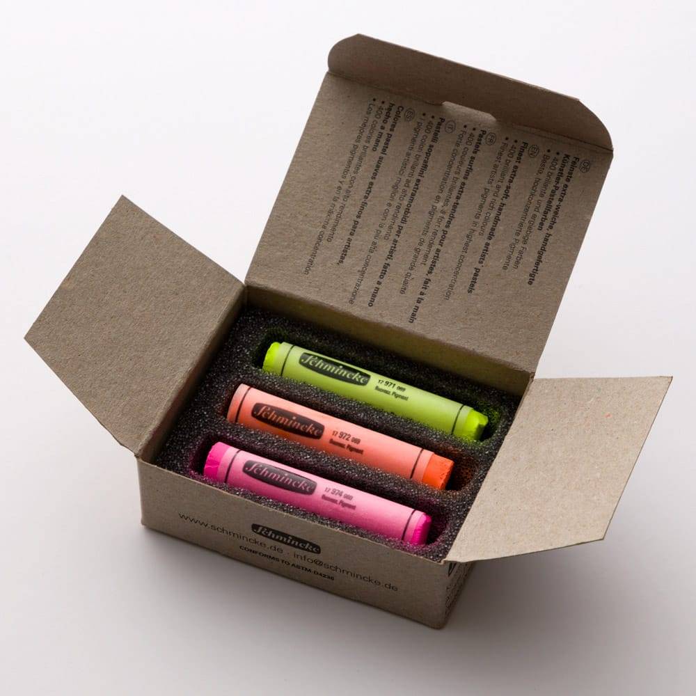 Set in kartonnen doosje met 3 neon kleuren: 971 fluor geel, 972 fluor oranje en 974 fluor roze.