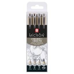 Pigma Micron set 3 fineliners + 1 brushpen licht koudgrijs