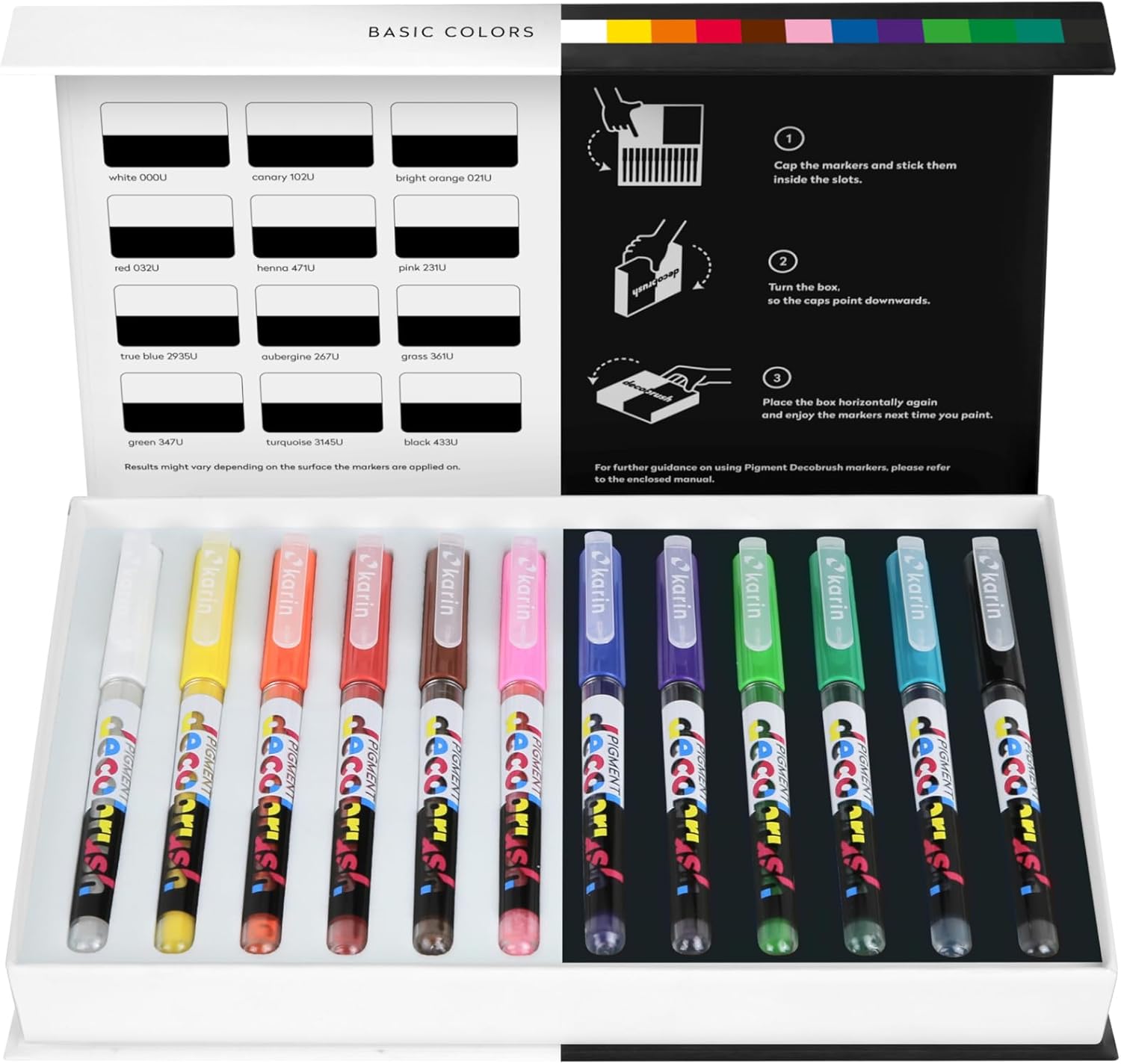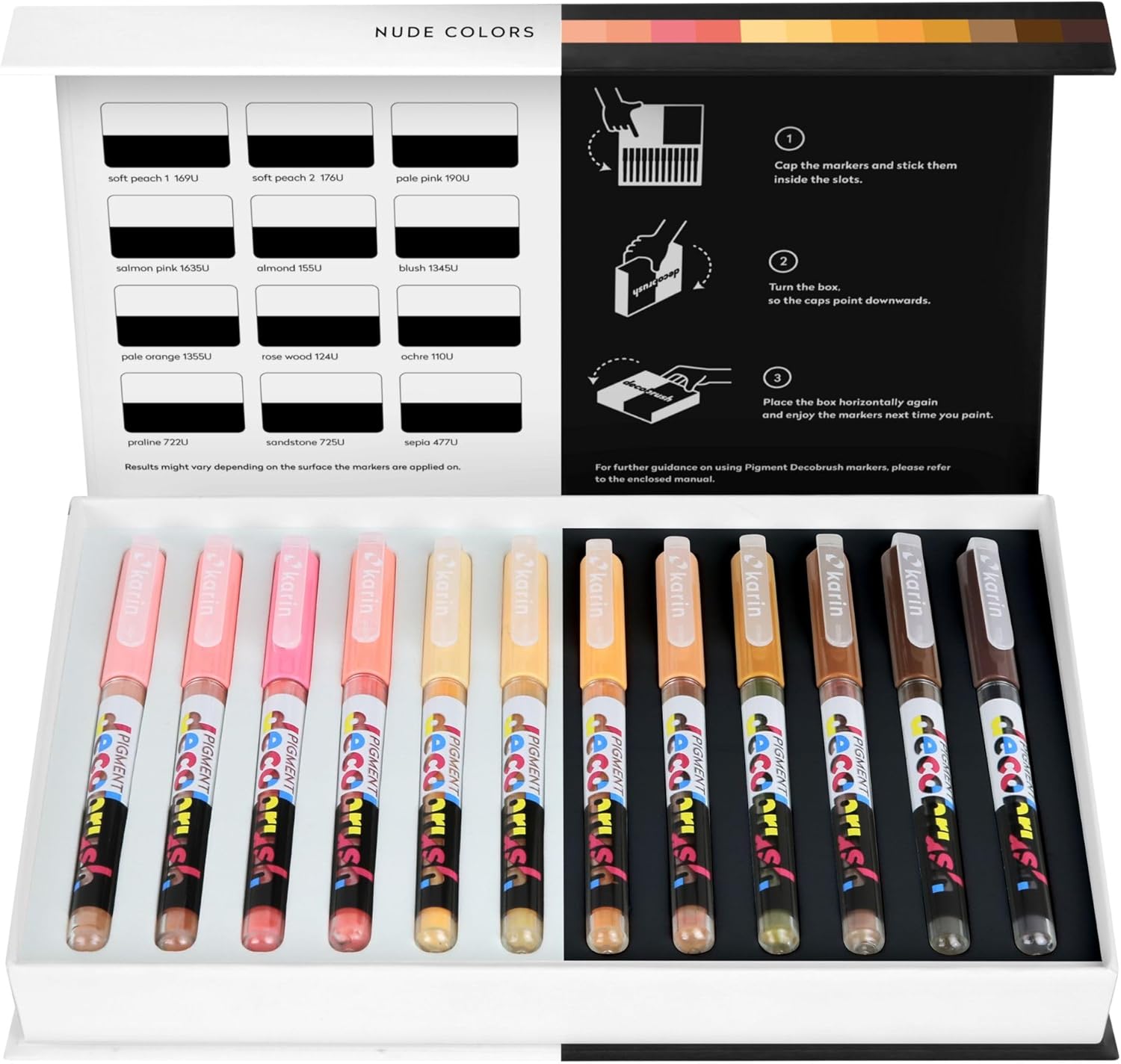 De inkt is niet giftig met hoge pigmentkwaliteit en duurzame penseelpunt. Dekkende, matte afwerking met professionele uitstraling. De markers zijn los verkrijgbaar in 84 kleuren.
