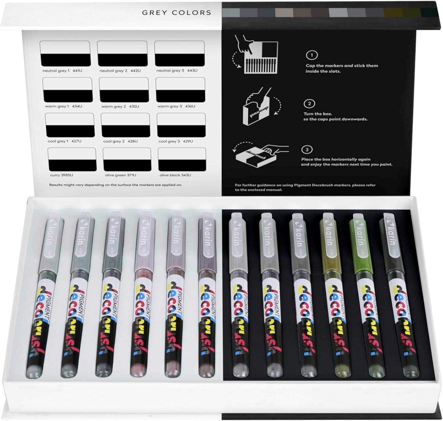 De inkt is niet giftig met hoge pigmentkwaliteit en duurzame penseelpunt. Dekkende, matte afwerking met professionele uitstraling. De markers zijn los verkrijgbaar in 84 kleuren.