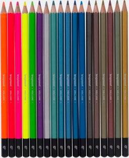 De potloden worden bewaard in een compact doosje, zodat ze makkelijk mee te nemen zijn. Deze set bevat 12 metallic en 6 neon kleuren! Glutenvrij.