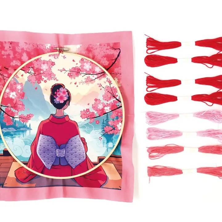 Deze punchnaaldset bevat alles wat je nodig hebt voor een elegant borduurproject: een borduurring 20cm, stof met het motief, een punchnaald, 8 kleuren garen en instructies. Perfect voor rustige, creatieve momenten.