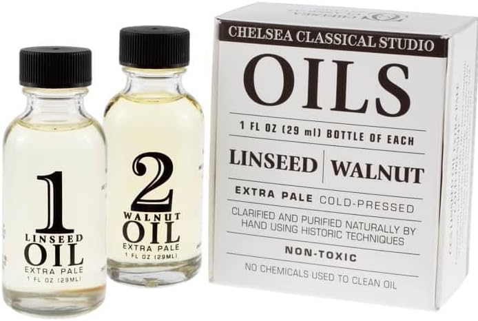 Inhoud van de set: 1x flacon 29ml linseed oil extra pale en 1 flacon 29cm walnut oil extra pale.