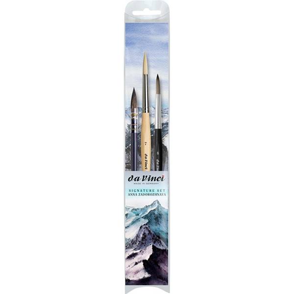 Deze set is ideaal voor alle soorten aquarellen, maar is vooral geschikt voor landschappen en natuurthema's. Wordt geleverd met 3 aquarelpenselen: De Serie 438 Mix-B No.2 is een eekhoorn en synthetische mix, het perfecte hulpmiddel voor bijzonder fijne details. De Series 180 Dartana-Spin No.7 heeft een extreem spitse punt die een grote variatie biedt tussen dikke en dunne lijnen. De serie 3373 Synthetics No.8 is een universeel penseel.