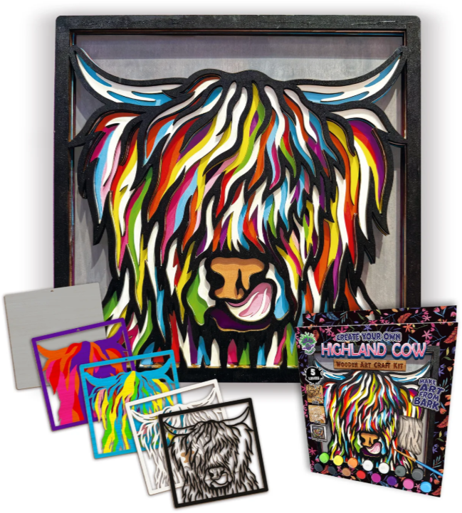 Met deze Wood Art 3D knutselset “Hoogland Koe” maak je zelf een gelaagd houten kunstwerk met een charmant koeien-design. De set bevat meerdere houten lagen die je stap voor stap schildert en op elkaar bevestigt, waardoor een speels 3D-effect ontstaat.